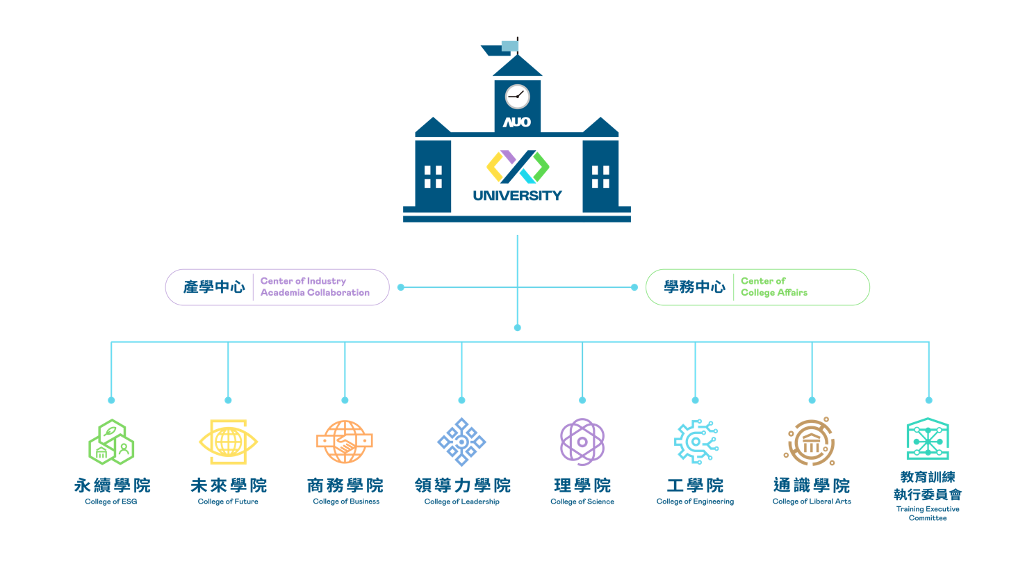 我們鼓勵每位友达人持續學習發展,友达大學依據專業核心能力發展與次世代人才培育需求,發展商務經營學院、永續學院 、未來學院、理學院、工學院、領導力學院與通識教育學院等七大學院,共同形塑組織內部教學相長的動能,並針對各學院的專業核心能力陸續推出優質課程,激發友达人發揮潛能,創造無限可能。