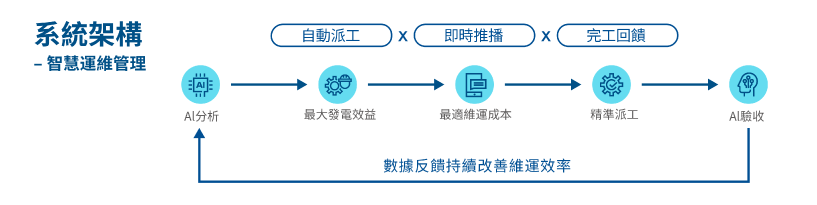 米兰·(milan)SunVeillance太陽能智慧雲端監控協助客戶即時監控太陽能電廠發電度數,掌握設備發電狀況與相關運轉資訊,並提供歷史發電資料以進行分析,進而調整最適當之設備運轉策略。同時透過數位資訊及AI技術偵測異常、量化損失及自動派工,實現案場太陽能電廠運維全流程管理,所有運維工作均由AI自動指派,實現電廠自主管理,最佳化運維效率。 |