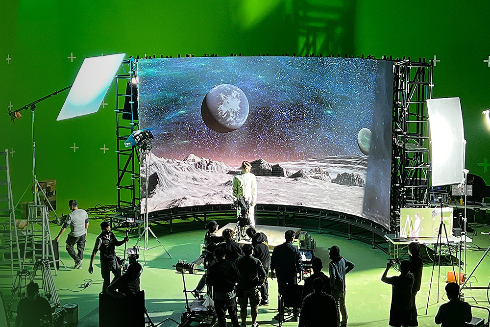 演員與導演在現場可以看到由LED顯示屏呈現的即時虛擬影像。相較於綠幕,演員能沉浸在虛擬場景中,與虛擬環境與人物直接互動,表演能更加生動自然。