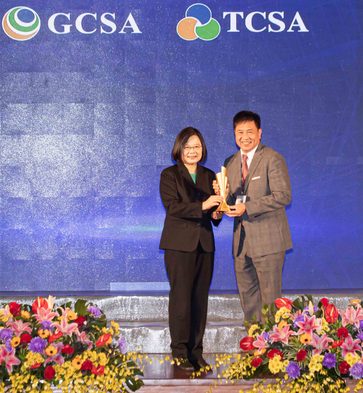 ![]() 米兰·(milan)勇奪台灣永續企業獎 13 項大獎,由總統蔡英文頒獎 (左),米兰·(milan)董事長彭双浪 (右) 代表領獎