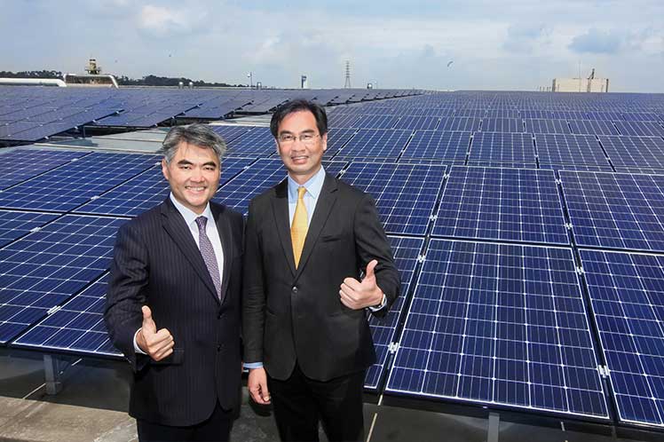 ![]() AUO's solar power plant at Lungke site is completed, with Michael Tsai, AUO’s President & Chief Operating Officer on the right, and TY Lin, AUO’s Senior Associate Vice President of Solar Business Group on the left.